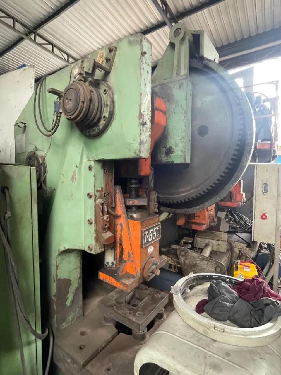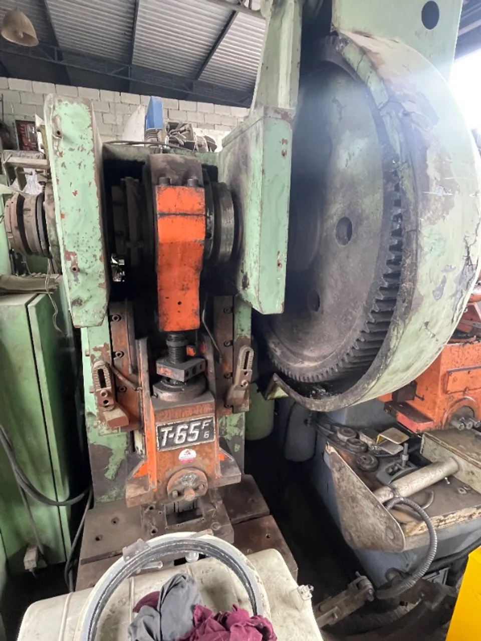 ? Marca: Harlo ? Modelo: T65F ? Tipo: Prensa freio de fricção mecânica ? Capacidade: 65 toneladas ? Estrutura reforçada em ferro fundido ? Sistema de fricção de alto desempenho ? Mesa e martelo em excelente estado ? Ideal para produção, ferramentaria e conformação metálica