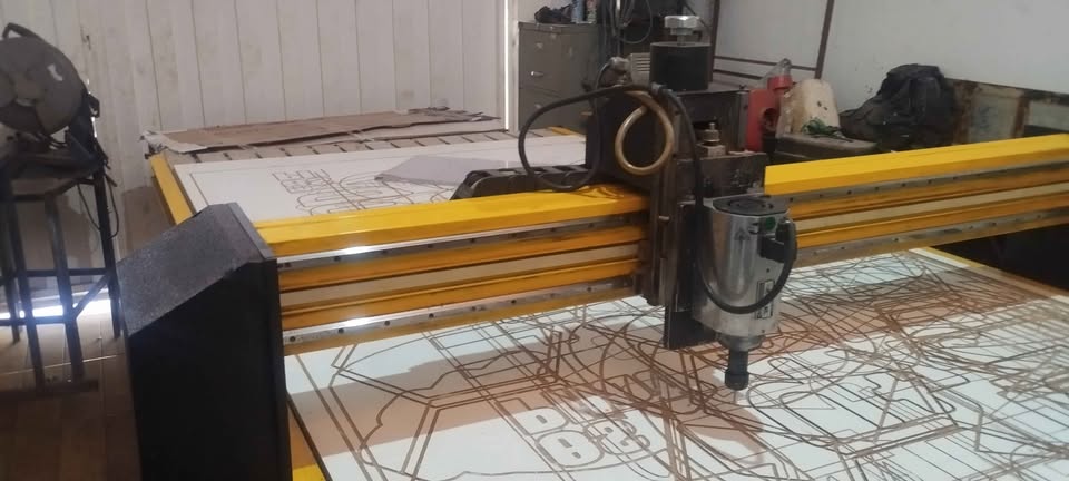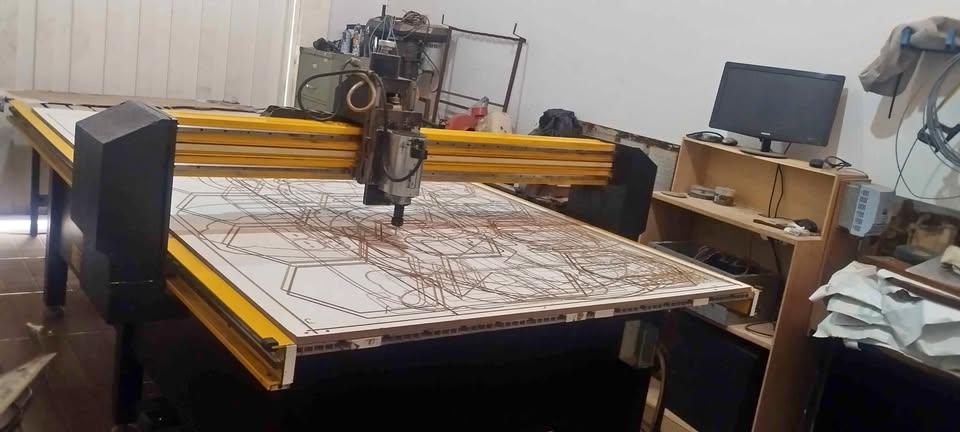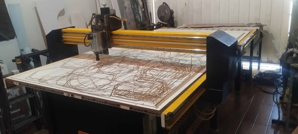 Máquina industrial Router CNC, controlada por computador usada para cortar, perfilar, gravar e usinar diversos tipos de materiais.
