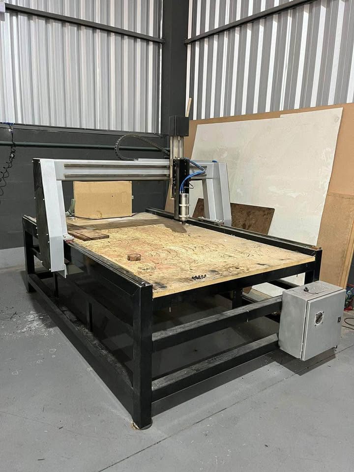 É uma máquina de corte e gravação controlada por computador. Ela usa o software Mach3 para interpretar arquivos de desenho.