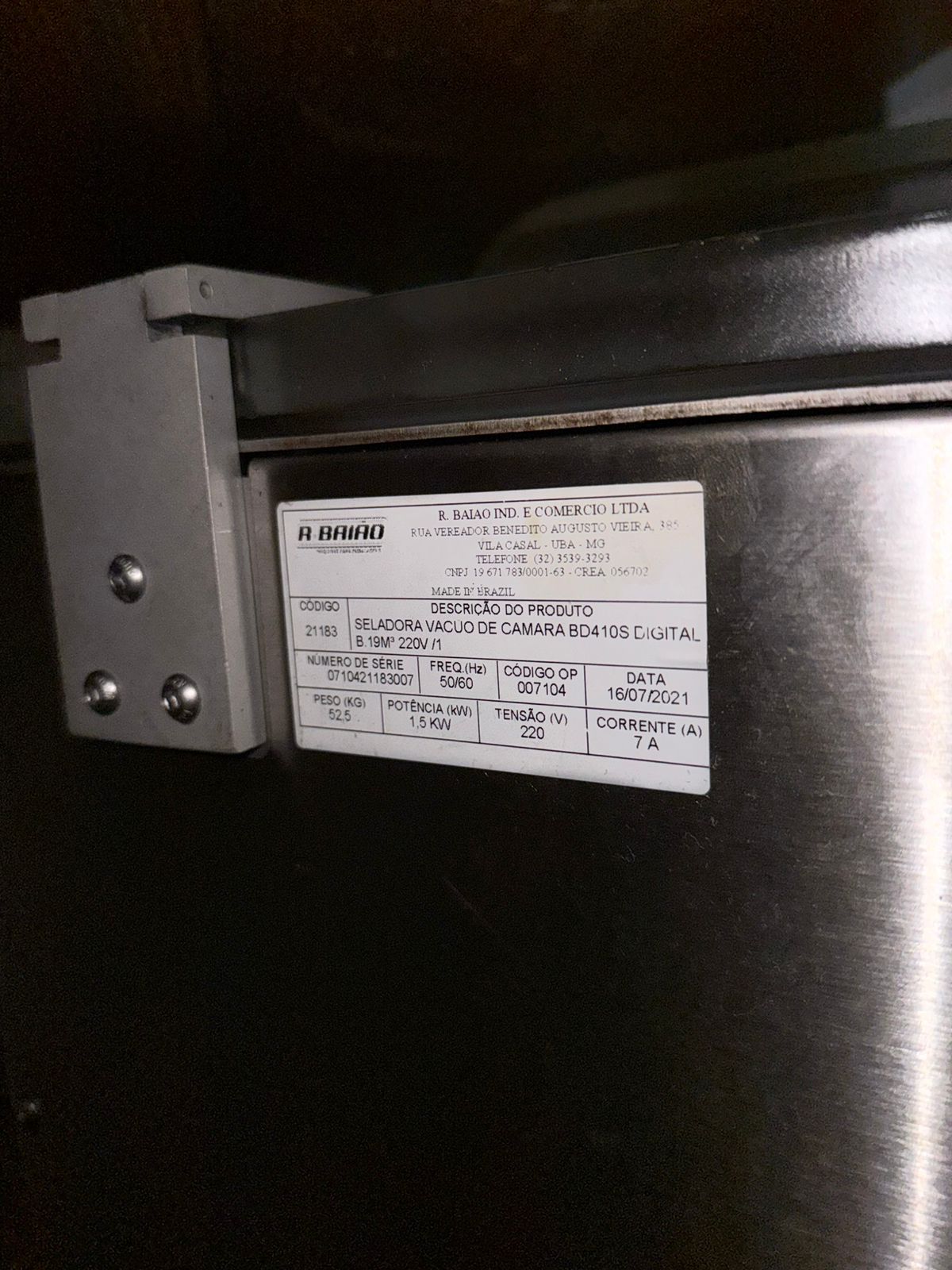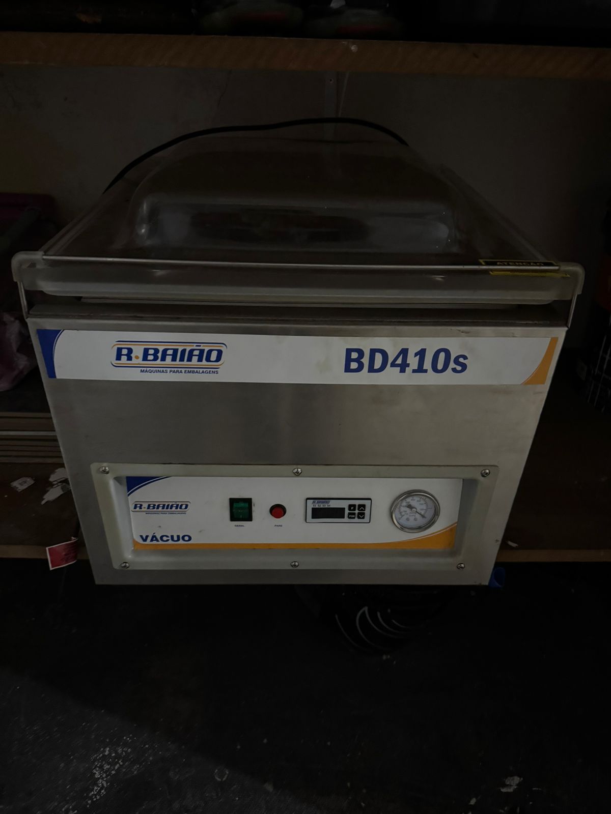 Máquina profissional usada pra embalar produtos a vácuo dentro de uma câmara fechada, retirando o ar da embalagem antes de selar.