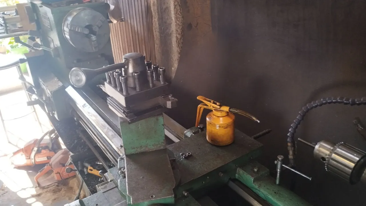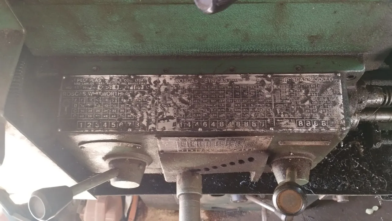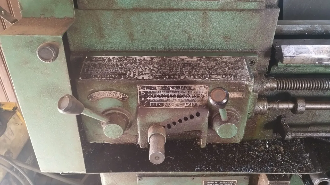 Torno mecânico Peloplas para trabalhos de usinagem. Ideal para projetos de marcenaria e metalurgia. Robusto e eficiente.
