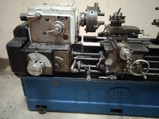 Torno Mecânico IMOR robusto 400x1000mm, revisado, contra ponto e duas lunetas, castanha de três e castanha de quatro.