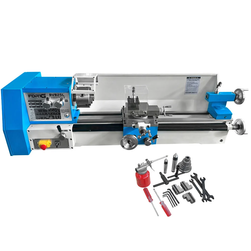 O Torno Mecânico Brushless FG0002X220 FORTG é um equipamento empregado por profissionais na produção e acabamento de peças metálicas, tais como: eixos, polias, pinos, roscas, peças cilíndricas internas e externas, cones, esferas, entre outros. Este torno vem com motor 220V e 750W de potência. Mas o mais interessante do motor é sua potência e nível de qualidade, o que confere ao torno maior torque e vida útil, além do baixo índice de manutenção. Possui interruptor magnético com a função de travagem de emergência, rotação frente/reversa e a função de proteção ao torno e aos componentes elétricos. Além de protetores de mandril e carro.
